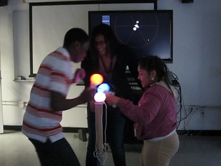 We kicked off the day with a pizza lunch and an introduction from Parsons staff that included amazing animations made by students! Next, we all headed up to the computer lab, where we got to play a bunch of new games that ranged from more traditional computer games...
