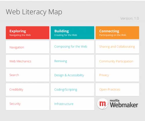 The Web Literacy Standard is a map of competencies and skills that Mozilla, Mouse and a large community of stakeholders believe are important to pay attention to when getting better at reading, writing and participating on the web. Go to WebMaker.org for more info on the Teach the Web movement.