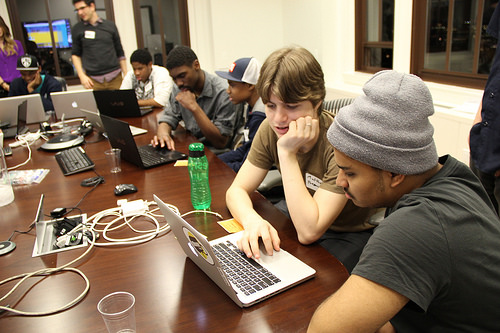 Youth from Global Kids led a workshop on serious games, using cards from Grow-a-Game. This helped us to break down game design into its different components. What are the parts of a game? How can a familiar game be redesigned to solve a real-world problem, such as poverty or racism?