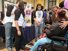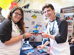 This year's Mouse Corps group presented four amazing assistive technology projects, all designed to support users who have cerebral palsy. They partnered with members of United Cerebral Palsy to design and prototype Artillo, a digital drawing tool within a soft pillow, designed for people with limited physical ability; Game-Ability, a series of video game controllers designed to help a variety of users with a variety of physical abilities play games together; Joy to the Key, a modified/adapted joystick that interacts with digital keyboard software to help people with limited mobility type and use a mouse; and Shoe-levator, which helps people with limited mobility put on their shoes more easily.